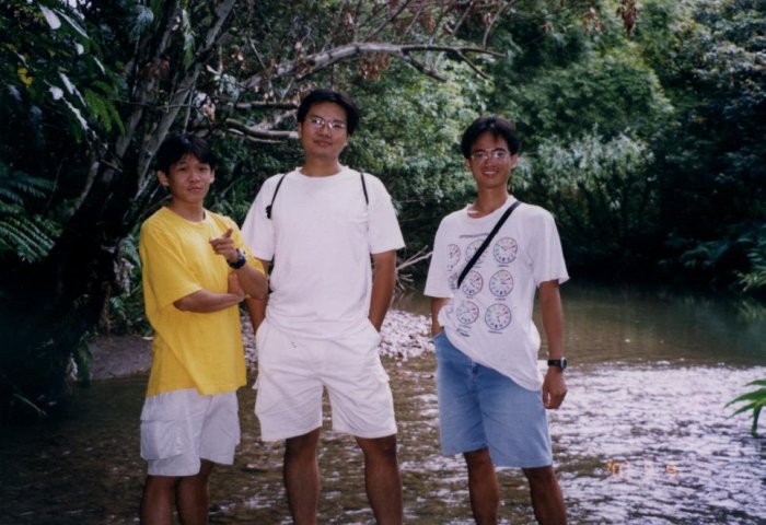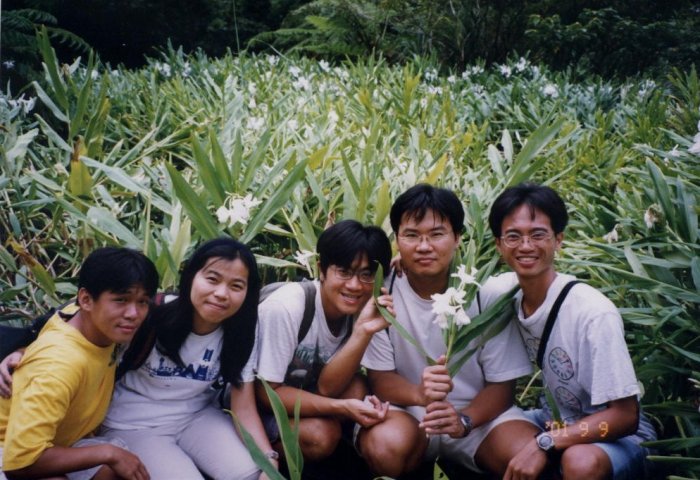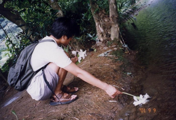 香味四散的野薑花吸引了很多小昆蟲,致遠正專注的用溪水將花裡的小蟲子一一清除掉!