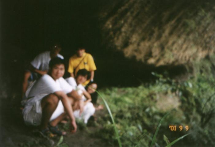 不到一個成人身高的月眉洞藏匿在摩天瀑布後方,洞內斷面平整的程度實在讓人感到驚訝....