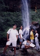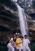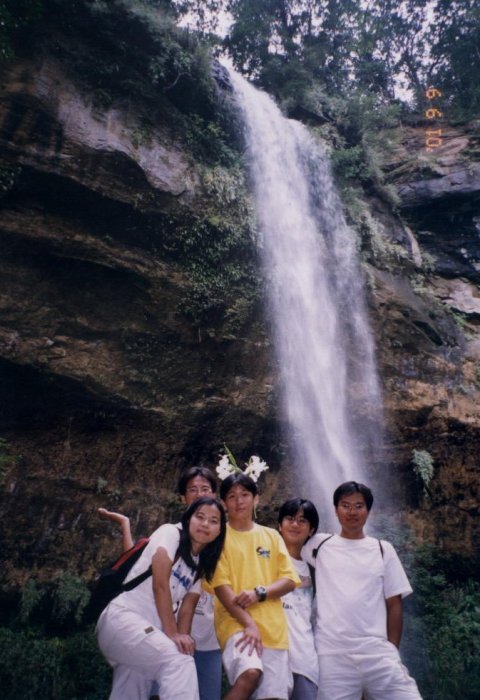 看似近在眼前的摩天瀑布,其實頂端的高度是非常高的,相機都已經架到了我們的腳底下,才能拍成我們和它上半段的合照呢!