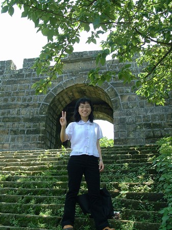 接下來就要往下一個景點-海門天險前進。地圖上看起來不近不遠,本來決定要走路去的,可是天氣超熱,後來還是回頭去停車場把車開去。對了,在大觀音像旁邊就有停車場,是計次的,一次四十元,所以如果有人要開車來的話,直接開上來就好了,不然就跟我一樣,在停車場停了二個小時,六十元!車子往上開去,看到一個地方停了很多車,是二沙灣砲台,先開過頭,才知道就是海門天險。