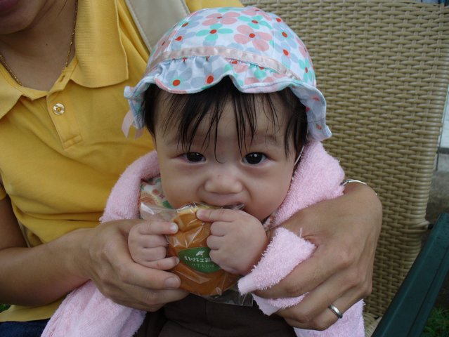 小樂樂相當有觀光客的樣子,銅鑼燒還沒開就急著吃