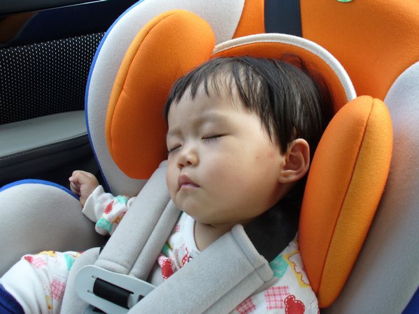 上了國道5號,沒想到一路順暢,只花了一半的時間就回到家。小樂樂累得熟睡在車上。