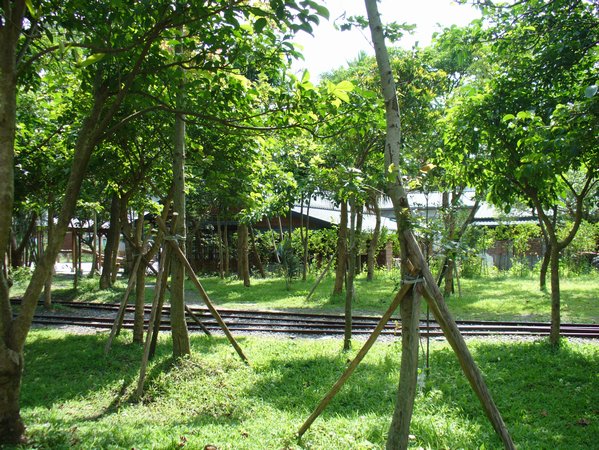 林場肉羹的人非常多,吃一碗就像是打仗一樣,不過仍然是好吃。也許有很多人不知道旁邊就是羅東林場,網路上看起來還不錯玩,而我這個森林系畢業的,當然要來參觀一下。一進去就看到了竹林車站,不知道是不是當時運木材真的車站?裡面風景很不錯,樹林下,鐵軌旁,還有一家座位在火車廂中的咖啡店。
