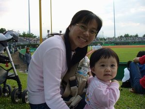 只要有大聲一點的加油、歡呼聲,小樂樂就開始哭,害我們只看到第4局就先離開了,後來陳金鋒打的全壘打就沒看到了。小樂樂怎麼沒遺傳到媽媽的愛棒球呢?