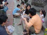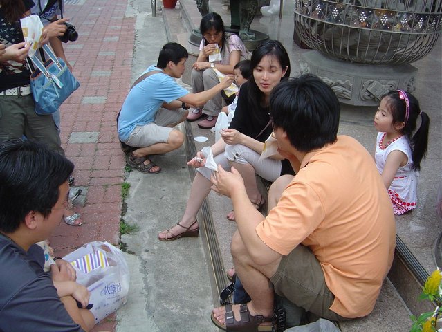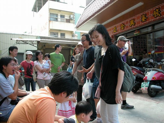 到了安平,時間差不多,但是蝦捲分店的人已經超多,排隊買了旁邊的依蕾特布丁後,跟大家集合,在一間廟前大家就嗑了起來,果然相當有278的風格。這場路邊美食秀主演的是三個小朋友,樂樂、豬豬、糖糖。大家除了吃,就是跟這三個玩(這三個長大後要負責養我們這一群老骨頭?)。完食後已經有點飽了,就逛逛老街,但是人實在是太多了,完全看不出景氣不好的樣子。在地人攤販告訴我們要去正合興蜜餞,ZI在牛棚練完不能看的Sinker後,進入原本人不會很多的正合興,但…一下子人就變多了,278人氣超旺!