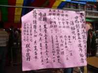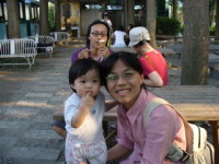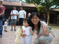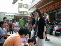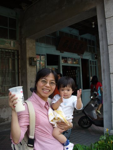 第二天大家吃完早餐,第一站就直衝鹿港。我一時以為是大家分頭走,鹿港集合,所以就先出發,雖然比較早到,但是車位難尋(一直被彩蓮唸,早知道就跟大家一起走!),停好車時,其他人早就不知道逛到哪兒去了,只好自己跟彩蓮逛(到鹿港的路上還接到公司的電話,說什麼3.5G網卡的SIM卡被鎖,要我解決,問他SIM卡的電話號碼他也不知道,真是有夠ooxx的!直屬老闆在出國前,還是把我的手機號碼給出賣了…)。鹿港之前樂樂未出生時就來過了,所以還有一點點印象,先去吃麵線糊(跟大家吃的不同一家),買了阿振肉包後往天后宮方向走,總算遇到了劉牙醫,因為帶著小孩走不快,所以才遇到。天后宮有辦活動(擲杯活動,獎品很有趣),所以也是人超多,有交通管制,大家各逛各的,最後才集合於全家便利店。在此劉牙醫一家先行回台北,洪大律師也要先去看牙先離開。