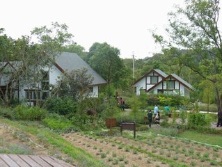 去年底苗栗明德水庫旁新開了一家薰衣草森林,這次終於有機會去看一看。網路上說這家的路比其他的分店好走,又離家不遠,所以一早就出發了。