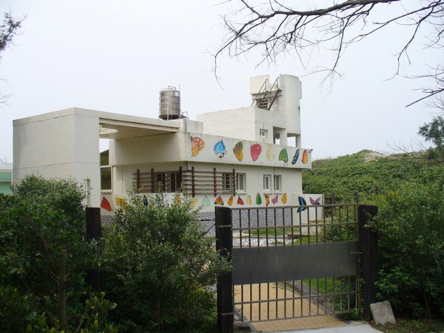 上次經過蝴蝶館沒進去看看,這次再來我們當然要去瞧瞧。可惜大門深鎖,不知是不是得要有活動的時候才能進去。不過報紙上說紫斑蝶從南部遷徙上來會經過這裡,到時候可是賞蝶的好時機。
