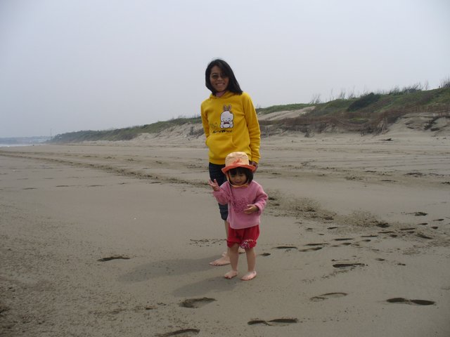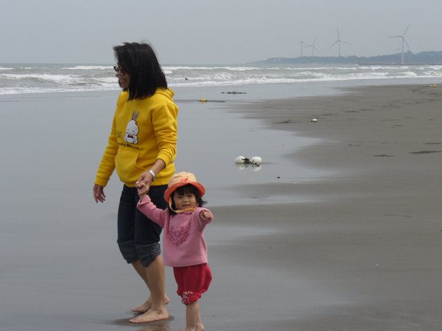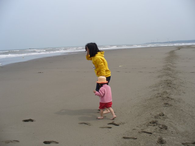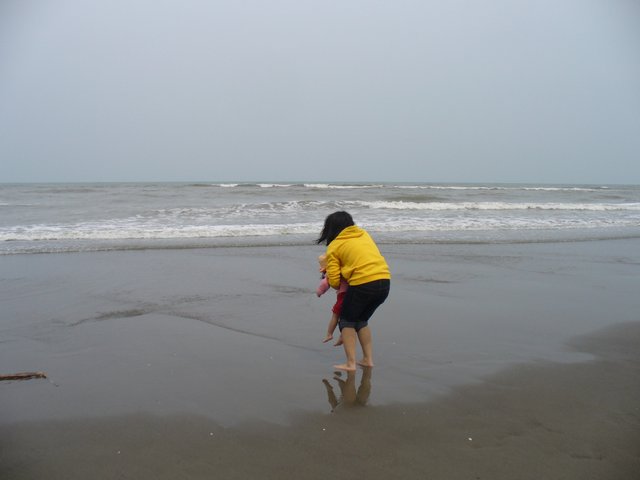 一開始樂樂還不太敢玩,可能是覺得腳髒髒的,但是一下子就習慣了,邊踩邊靠近海裡…現在我們出來玩的目的都是為了讓樂樂多多接觸與家裡不同的環境,所以就讓她玩了一陣子。
