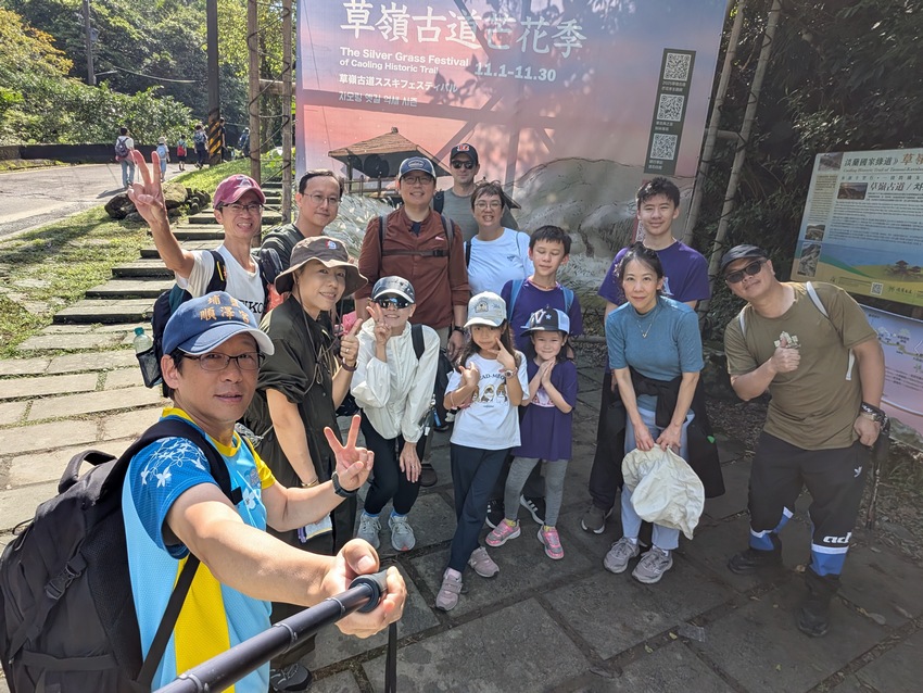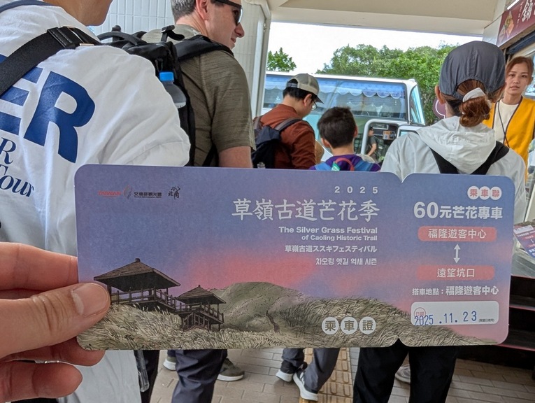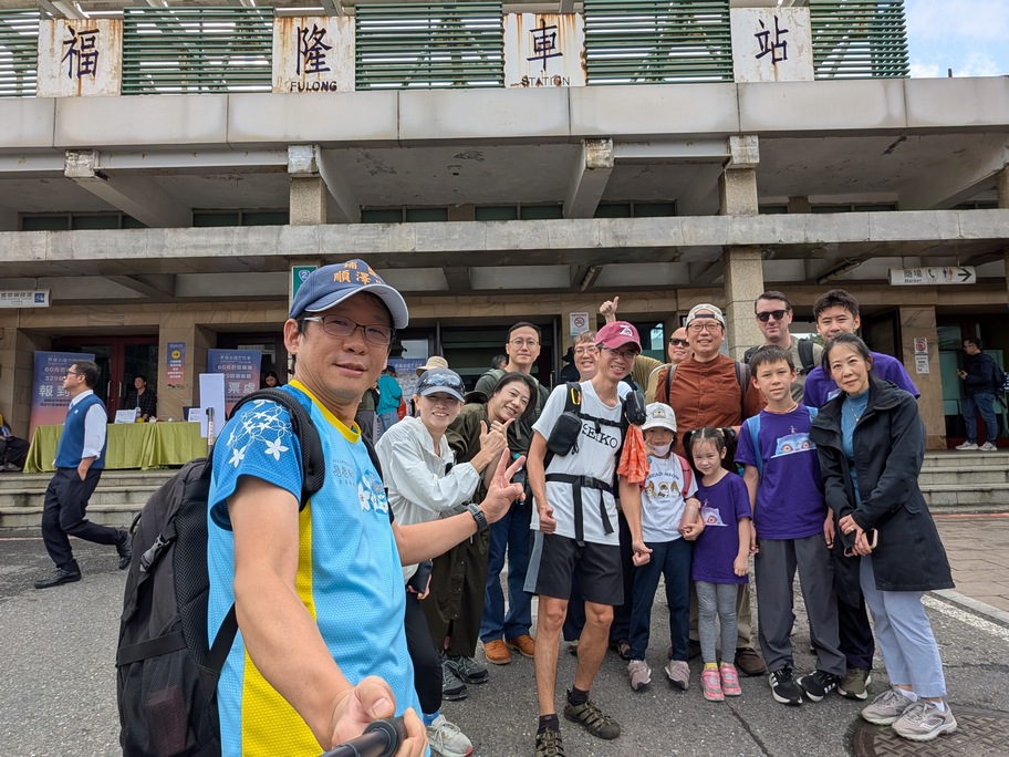 一開始是WSH貼了一張2016年FB的草嶺古道回顧照片,而我本人2005年搬到頭份後,就再也沒有去走過了,就慫恿大家約起來,於是大家喬了一下時間,約定11月23日11點福隆火車站集合。大家分坐同一班自強號,不同車站上車,座位也不同,到福隆出站順利集合。但車上發生一個小插曲,七堵站一過車上廣播就出錯,先是下一站直接跳到好像是彰化的二林,後來修正但仍然錯誤的宜蘭站,福隆站被跳過了,坐我旁邊的乘客也嚇一跳問我是不是福隆站已經過去了,後來知道分坐不同車廂的大家旁邊的乘客也是一樣,原來這班車應該超過一半都是要去走草嶺古道的,因為剛好是芒花季啊。