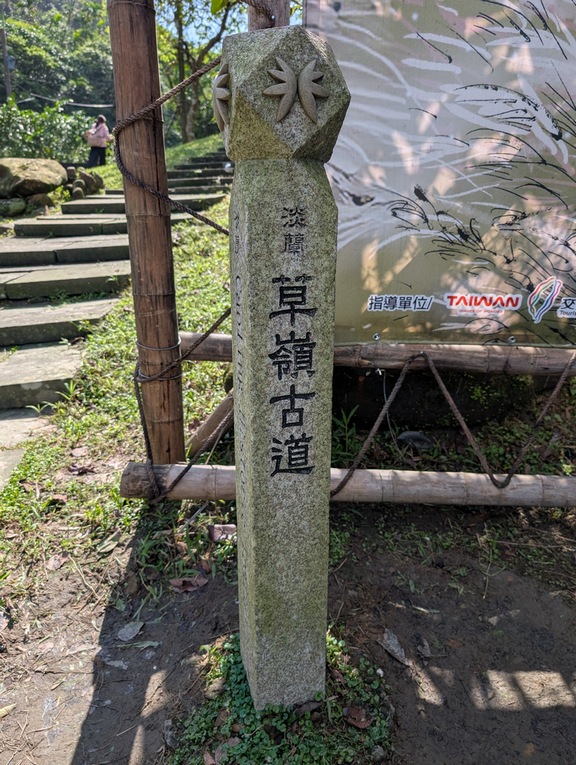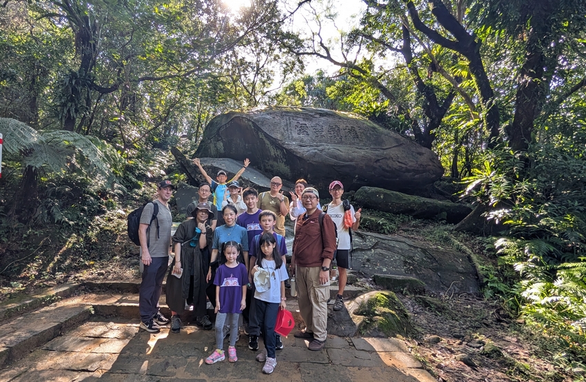 大約十分鐘就到遠望坑口,大家的速度不一,各走各的,果然有在跑馬拉松的淑嬛一路走在最前面,我才跟了一小段就決定這個速度對我來說太快,還是走自己的。因有芒花季而在草嶺古道的地標旁有了一個拍照的背板,當然是來個全員合照。雄鎮蠻煙與虎字碑當然也是必拍,而且還要排隊,但我的自拍棒的止滑橡膠墊掉了,只好交由其它較廣角的相機來拍。