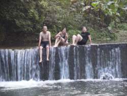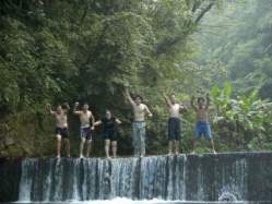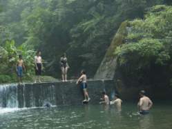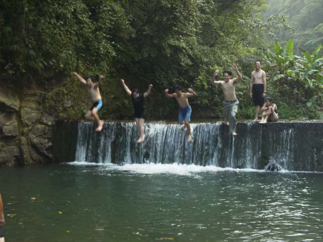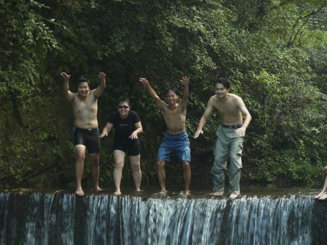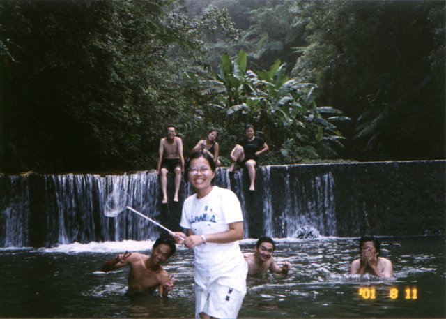 到達營地後,大家很快的下水,而且玩起跳水的遊戲,卻沒人紮營,彩蓮則拿蝦網抓魚。跳水的精采動作請看照片。