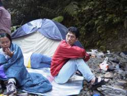 由於睡袋不足,加上體積龐大的徐老頭寡廉鮮恥,想要獨占一條,最後一杰與惟德拼了,猜拳決勝負,所謂邪不勝正,一拳就解決掉老頭,爽乎!此時一條睡袋卻可供四人使用,哈哈!另外有件事必須要說一下,那就是