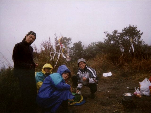 ,誤會誤會!既然起床了,外面也是烏雲密佈(氣象局說鋒面來臨),那就吃宵夜吧,在那麼冷山上的帳棚中吃東西是最爽的一件事,只要是熱的就很讚,何況是紅豆湯圓薑湯更不用說了。吃完沒事當然再躺下囉,第二波一睡就到了早上五點多,四點半的鬧鐘完全沒聽到,睡的太沉了,大家口頭詢問是否要起床,大概是睡袋太舒服了,沒人回答,續睡!一個多小時後終於起床吃早餐,吐司