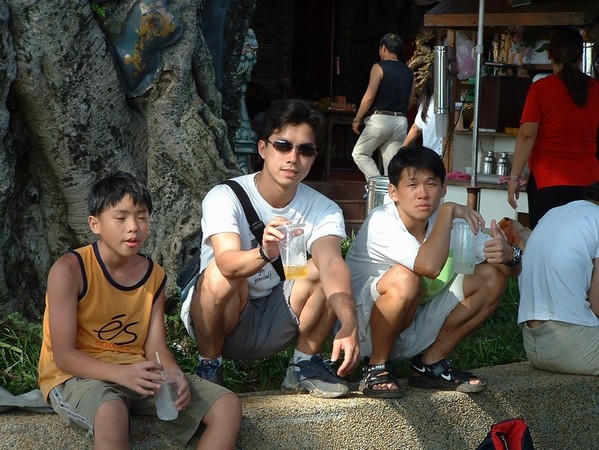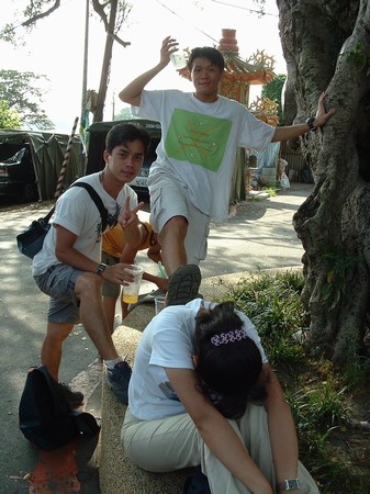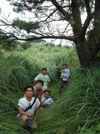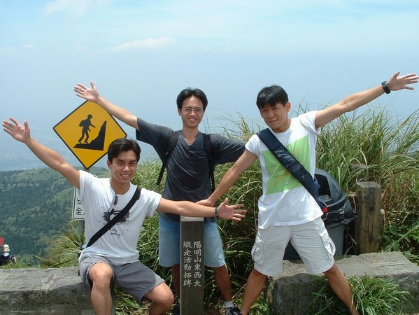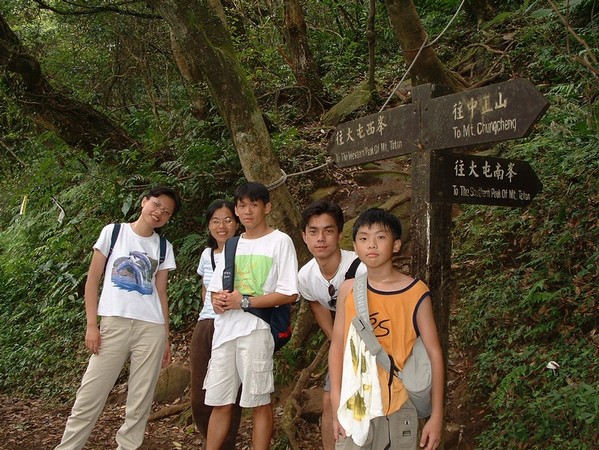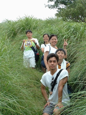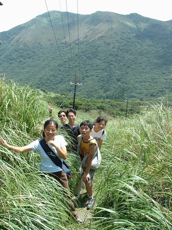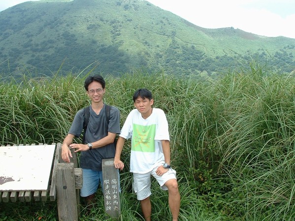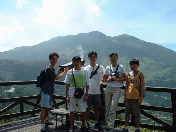 2002.07.21早上八點半中央健保局前集合,準備搭九點的車到大屯山攻主峰、西峰、南峰。前一天約的廣年兄因為要交報告(上班居然還要交報告,念研究所也沒那麼用功),小餅根本沒接電話,但是"連叔叔"帶了姪子小傑來,一下子大家都變成叔叔阿姨,老了一輩,真是...歲月不饒人啊!