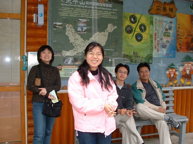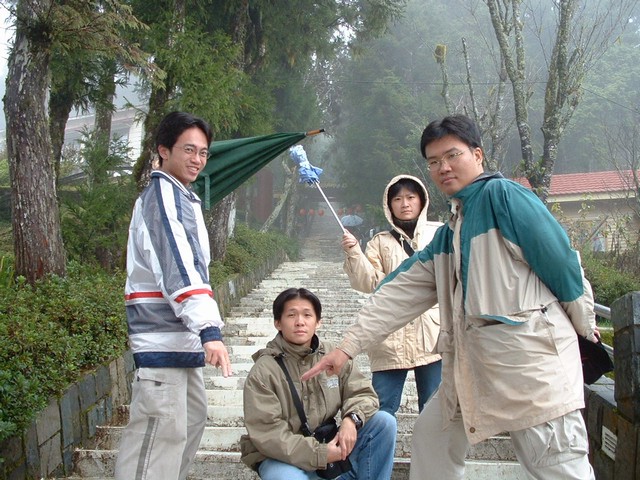 早起對我來說原本就是輕鬆的,七點前就在樓下等待大家的出現,天氣不太好,不過還是得去,反正我們這群人出遊當天是好天氣的紀錄可以用手指算的出來。不久大家都到了,直奔宜蘭去...一路上還算順利,除了路上有塊大石頭坍坊。經過討論後,決定上太平山,不去市區,買了門票後就出發,途中經過「中間」,因為它就在中間,霧越來越濃,就像上次來一樣,好不容易到了太平山,溫度只有十度,不過並不覺得特別冷。