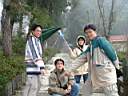小火車坐沒多久就到了,天氣似乎有變好的趨勢,沿著鐵軌走到底,還看到了疑似藍腹鷴和竹雞。若要等到回程的車來,要到5:30,所以大家就沿鐵軌走回去,欣賞風景也順便運動一下。下山的霧更濃,大家一路處在緊張狀態,不過並沒使我們的速度慢下來多少。到了棲蘭山莊CHECK IN後,本來要吃的泡麵被大家拋棄,決定吃餐廳的「猴頭菇大餐」!房間頗大,應該說床位多,看來可以睡9個人,晚上大家都很累,看看電視11點多大家就睡了...