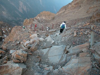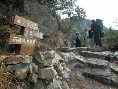 在此提出一點給後來要去的人參考,就是入山和入園是不同的!入山證是由警政署所負責,在台北市忠孝東路一段7號辦理,時間是9:00-11:30、14:00-16:30(很爽吧?一天只辦理五個小時!),這只表示你可以去爬山,而入園證是國家公園要看的,排雲山莊的床位和入園證一起辦理,另外床位登錄後一定要打電話去催,不然不知道等到何時才會好。