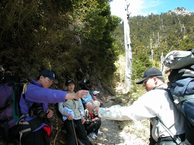 | 去排雲山莊必停的大峭壁 | 兩人搶水喝? |