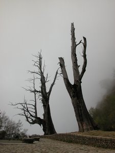 提早到了東埔停車場,司機大哥早就到了,還準備了吃的,真是貼心,可惜我之前泡麵吃太多,又怕下山會暈車,所以完全沒吃。下山時經過夫妻樹,司機還讓我們下來拍照,順便解說它的來由,想不到司機還兼解說員,呵呵…
