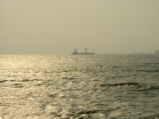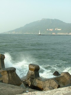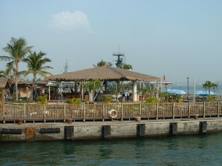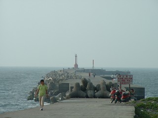 中午等到一點多才吃,就是為了一睹 "比臉大雞排" 到底有多大?結果是名不虛傳,大小足足有一張B4那麼大,根本不可能吃得完,也難怪小餅沒有點這個。所有的人全部挑戰失敗,只好外帶當做下午茶囉~吃完中餐就到了渡船頭坐渡船到旗津。果然是有在地的導遊帶路,我們沒有上去之前我跟彩蓮去的燈塔,直接到了堤防上,看著船進進出出的、浪花打上堤防,加上天氣相當得好,我們在這裡待了一個下午,上車時發現整車都是雞排的味,真是對不起阿湯的車,回到高雄一家冰店吃冰,這家店的牆上都是各式各樣的簽名,可見得是一家有名的店,不過店員還把我們的冷氣關了,一時覺得不太爽,不過冰下肚後就覺得剛剛好,在此小餅居然還買東西吃,難到中午吃不夠嗎?不然我們的雞排分妳吃嘛~晚上不知道要去哪裡,後來居然去逛大賣場,坐上了沙發,還說什麼人生的鬥志都沒了的…晚一點去空中走廊走走路順便消化中午的雞排,不然就吃不下打狗英國領事館的餐點了。晚上的行程可是說是聊天吹風而已…