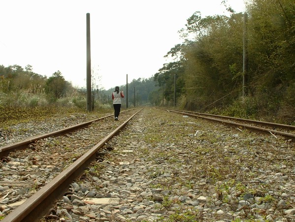 終於,我們到了!但是看到一個警衛手拿菜刀向一隻流浪狗砍殺(事發現場),不騙你!真的∼雖然我沒有真的看到他砍殺的那一瞬間,但第一,我聽到那隻狗的慘叫聲,第二,我看到那隻狗的傷口。那個人真是太過份了,可是他手上拿著菜刀,我也不敢說什麼(現在想想其實是藉口)。後來再往前走看到了斷橋,拍了幾張照片,因為想到走回去還得一個小時,所以就沒有多做停留,走了回去。這條路其實還蠻遠的,如果不想走的話可以開車過去,但是停車就要再五十元,所以建議第一次去的人,因為沒走過那個長長的山洞,還是走過去體會一下黑黑的山洞,就算是運動啦…跟女朋友增進感情的也可走走山洞,說不定有意想不到的收獲。