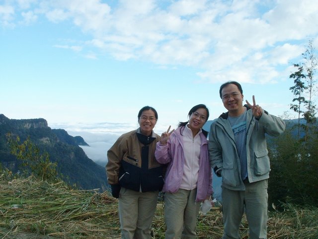 一早集合完後就一大隊的車隊上山,上山不到三個小時,天氣很好,不熱不冷,也不會晒。加上頭份班的人我想大概有個五十多人沒問題。中級山有時候其實比大山還難爬,不過這座標高2220M的山還算ok,常爬山的人應該覺得沒什麼,不過我是很久沒爬山,也沒有任何的運動了,所以一開始有點不適應,不過一下子就ok了,倒是下山時比較不行,覺得有老化的現象,還好有帶登山杖,不過,我想也該要注意多運動了…再這樣下去就真的不行!
