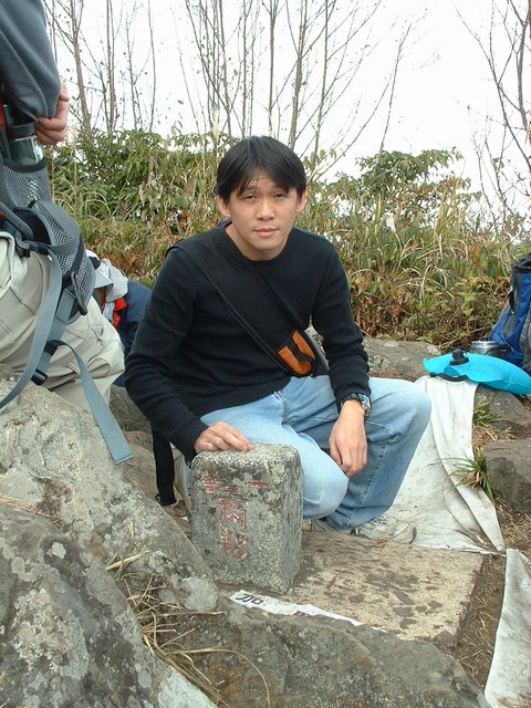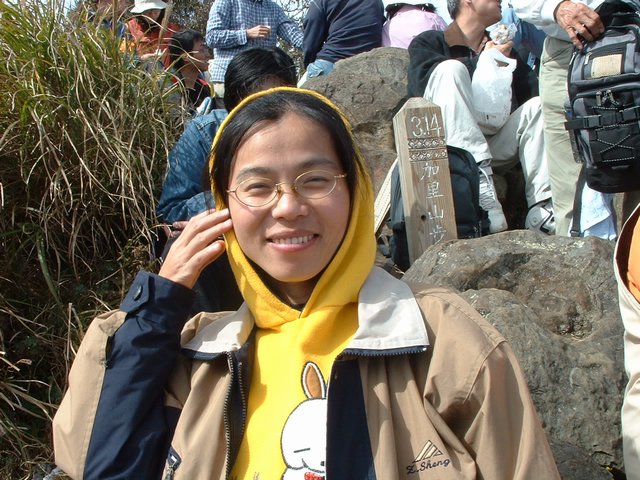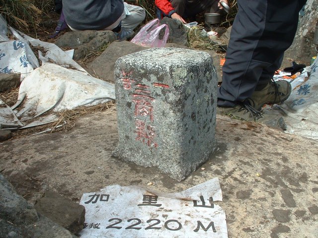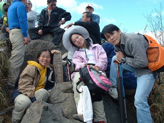 上了山當然要跟一等三角點來張照片,但是上山的人實在太多了,找個空檔都很難,最後彩蓮跟標高的柱子照了一張。不過值得一提的是這群社大的同學實在很不錯,雖然在山上吃吃喝喝的,但是都把垃圾帶下山。