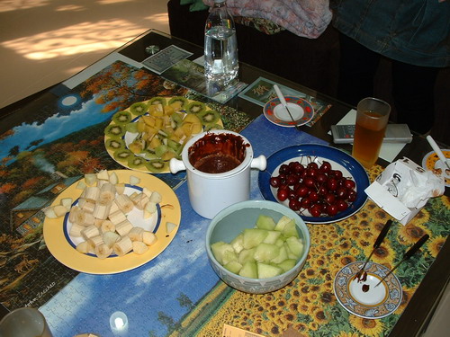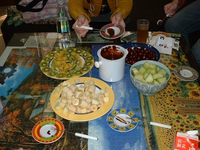 沒關係!人來就好!大家到的時候我還是很高興,而且還有超好吃的巧克力火鍋等著我…大家聊聊八卦,沒多久也把火鍋吃得差不多了…還好我們種的菜沒有漏氣(其實都是別人種的,哈哈哈…)不過,那個網管要走好像變得相當的困難了。