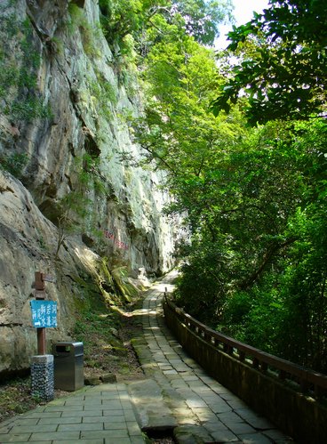 DM上和路邊導覽圖畫得不是很清楚,加上我們想走比較短的那一條步道上山,所以花了一點點時間找路(其他的時間是在看廟)。勸化堂正在整修,但彩蓮仍然對牆上的許許多多神話故事相當有興趣,因本人小時候困苦沒有讀到,所以不太了解這些神話故事,當然提不起勁。這裡有著許多的義工(我想是吧),很親切的幫忙,就連我在拍雞蛋花時也怕我不知道花的名字。