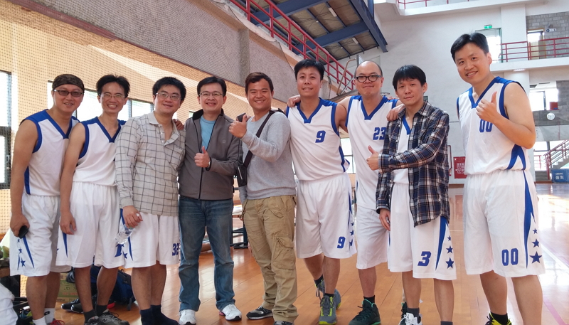 天氣不錯,而且剛好是學力測驗(國中基本學力測驗)第一天,球場上空空盪盪,剛開始只有我、一杰、徐到場,只好單挑,一杰狂妄的賽贏五場,這時,stone、小菜到場,不久小表成來了,好不容易湊足了六個人來三打三,沒想到表現搶眼的小表成不小心扭到!塞.....幸好有基測,保健室有開,打不到三十分鐘,小表成就在旁邊冰敷,慘!但是有人更慘.... 罰球!我只有三球,依照前幾次經驗,請定了!沒想到徐、小菜也是,哈哈,你以為進入第二輪?錯!一杰在經過眾人一旁耳邊吹氣,顯然手軟,一球定江山,意思是只進一球,真是太猥褻了!此時stone似乎不滿於只有一灌飲料,向大家挑釁三分,雖然我最近手感奇差,但是自尊不容踐踏,所以毅然參加!結果stone以零球做收,把剛剛贏來的飲料輸掉。 阿姨在,當然要去看看囉,喝完飲料後一行人移動至保健中心看看護士阿姨,也順便給阿姨看看,聊聊天,stone拿出剛買的A40照照相,後來原本要解散,但是不知誰又想打撞球,於是...台大男三舍 EAGLE vs PHOENIX,徐老闆說要先讓二十,stone堅持不要,剛開始雖然我們在閃光燈攻勢影響下表現不佳,但是後面急起直追,加上stone不斷洗洞,所謂熄火是也,結果,當然是慘敗....哈哈哈! 附中校友會籃球賽:2014年元旦練球 2014.02.28 附中球賽 2015年元旦練球 2015.02.27 附中球賽 元旦辭歲籃球紀錄:1996年元旦籃球賽 1999年元旦籃球賽 |