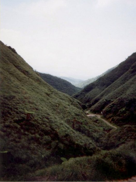 【啞口涼亭-北面景色】 由啞口涼亭向北望是我們走過的來時路,如此穿越群山而出的古道,可想見先人開路的辛勞!在秋冬時期,眼前所見的綠色山坡會變為白色芒草海! |