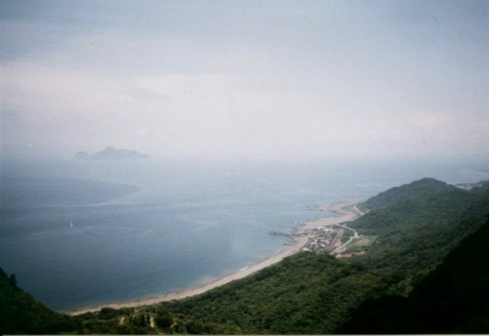 【啞口涼亭-南面風光】 歷經三個小時後,終於從福隆車站走到草嶺古道視野最廣闊的啞口涼亭,如願以嘗地看見龜山島及大里沿海風光!此時致遠除了向施詩分享他的喜悅之外,也沒忘了正在努力工作的阿伯! |