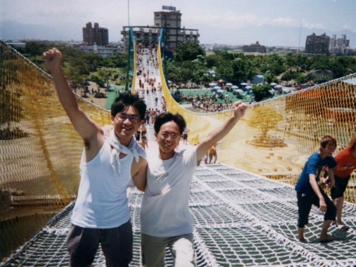 【冬山河親水公園-High Net】 耶!我們成功征服 High Net了!此時徐大老闆正在看洋妞辣妹... |