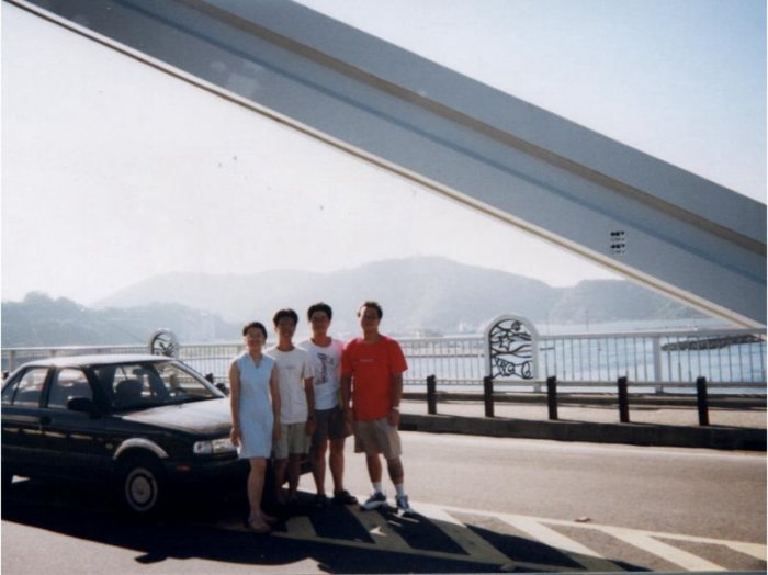 | 離開蘇澳冷泉公園後,我們就近到南方澳漁港附近走走,在導遊小姐帶路之下,我們經由南方澳大橋繞了漁港一圈。車子開上南方澳大橋時,大家被這裡的美景所吸引,立刻決定把車子停在橋尾的『臨時停車場』(因為橋頭的停車格已經有人先停了),好下車一覽南方澳大橋四周的港口風光!