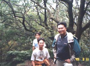 90年2月11日...嗯...是湯桑21世紀第一個的生日,天氣不錯,於是由彩蓮帶著我、一杰、湯去陽明山。本來是要走菜公坑山,但是經過討論,決定往對大家來說是挑戰體力的七星山主峰走去,而彩蓮上次的七星山之旅也未盡理想,於是彩蓮帶著大家走向苗圃登山口。